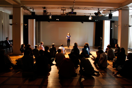 For the Chronicles of Work workshop What’s Work Worth? Danielle Adair performed alongside three videos from her And I Think I Like It. series, which was one of her ongoing projects while in residence at Solitude. And I Think I Like It. is a collection of thirteen “video song-poems,” which include original text, sound, and animations, with accompanying performances in presentation. The series began in 2011 and points to an anxiety, ennui, and, similarly, induced freedoms within the United States’ political landscape over the past two years – notably, the United States‘ presidential reelection years. Segments of the project were performed at the Human Resources and Monte Vista Projects in Los Angeles/USA, and The Kiesel in Friedrichshafen/Germany. Selected videos have also been presented in performance at The Standard Hotel (Los Angeles/USA), Bruno Glint Gallery (London/Great Britain), the Akademie Schloss Solitude’s Römerstraße project space (Stuttgart/Germany), and Gallery White Projects (Paris/France). Additionally, a majority of the song-poems from the project have been featured in art and small press publications. For further information visit http://danielleadair.com/and-i-think-i-like-it-comp.